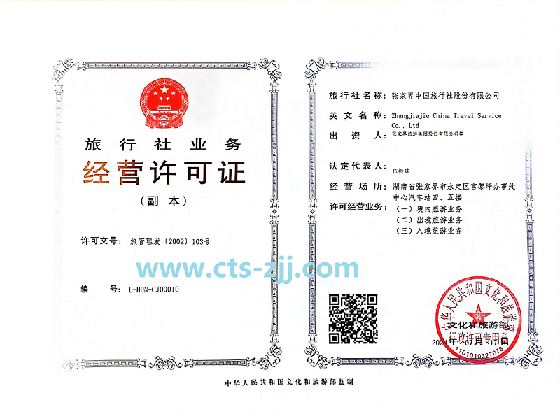 以上企業(yè)資源只作為公司業(yè)務(wù)資質(zhì)證明,不作他用. 版權(quán)歸張家界中國旅行社股份有限公司所有。 |