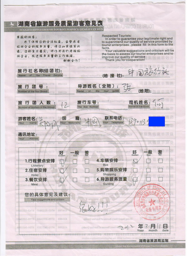 北京鄭先生一行12人旅游質(zhì)量回饋