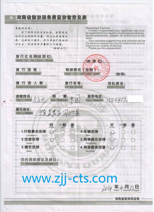 寧夏馬先生一行12人旅游質(zhì)量回饋單