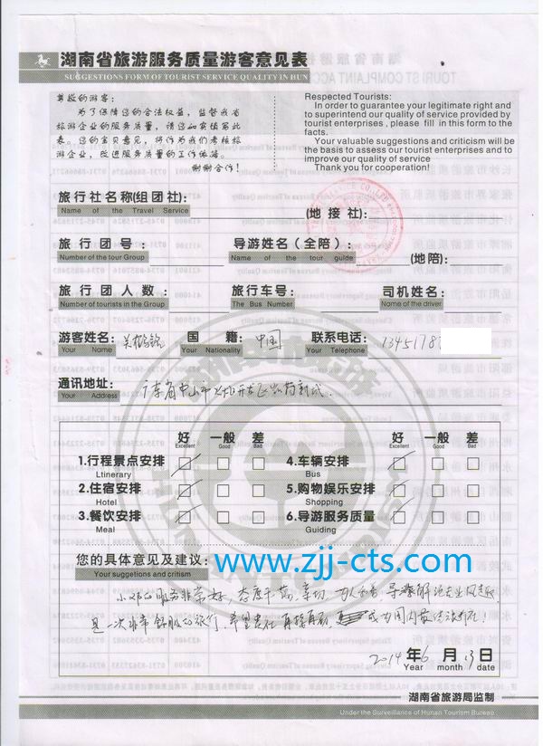 廣東關(guān)先生一行17人旅游質(zhì)量回饋單