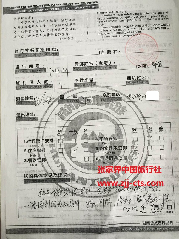 營口王冬梅一行9人旅游質(zhì)量回饋單