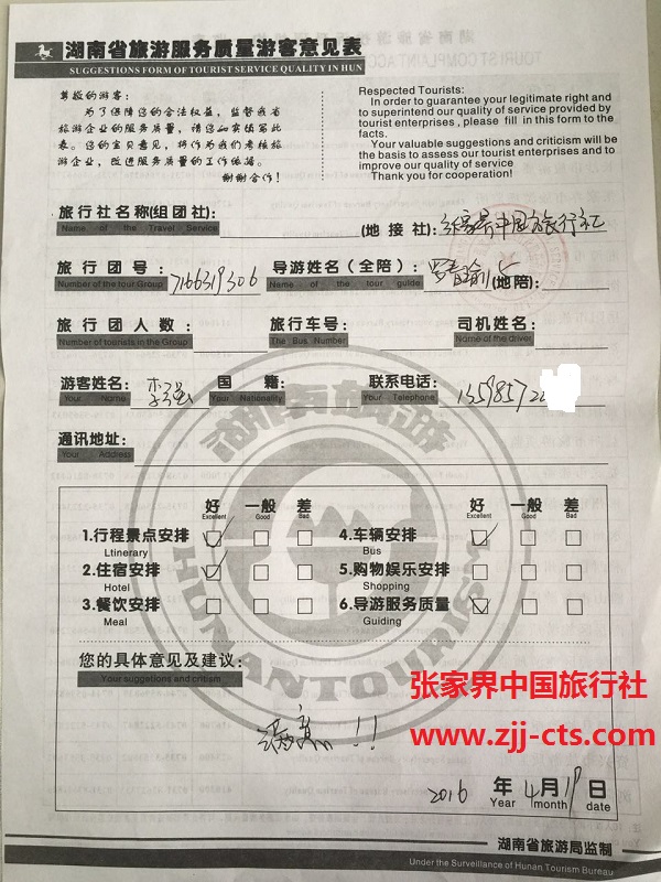 信陽李強一行22人旅游質(zhì)量回饋單