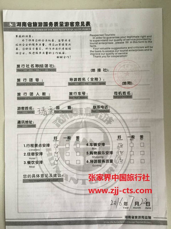 北海王春秀一行8人旅游質(zhì)量回饋單