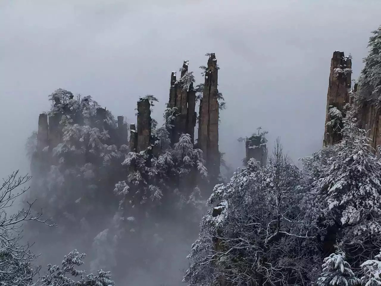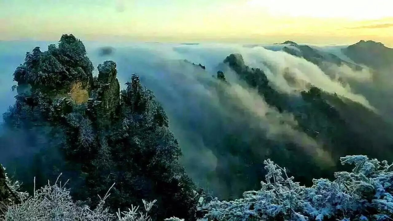 張家界核心景區(qū)雨后云海美如仙境,迎來17年第一場霧凇